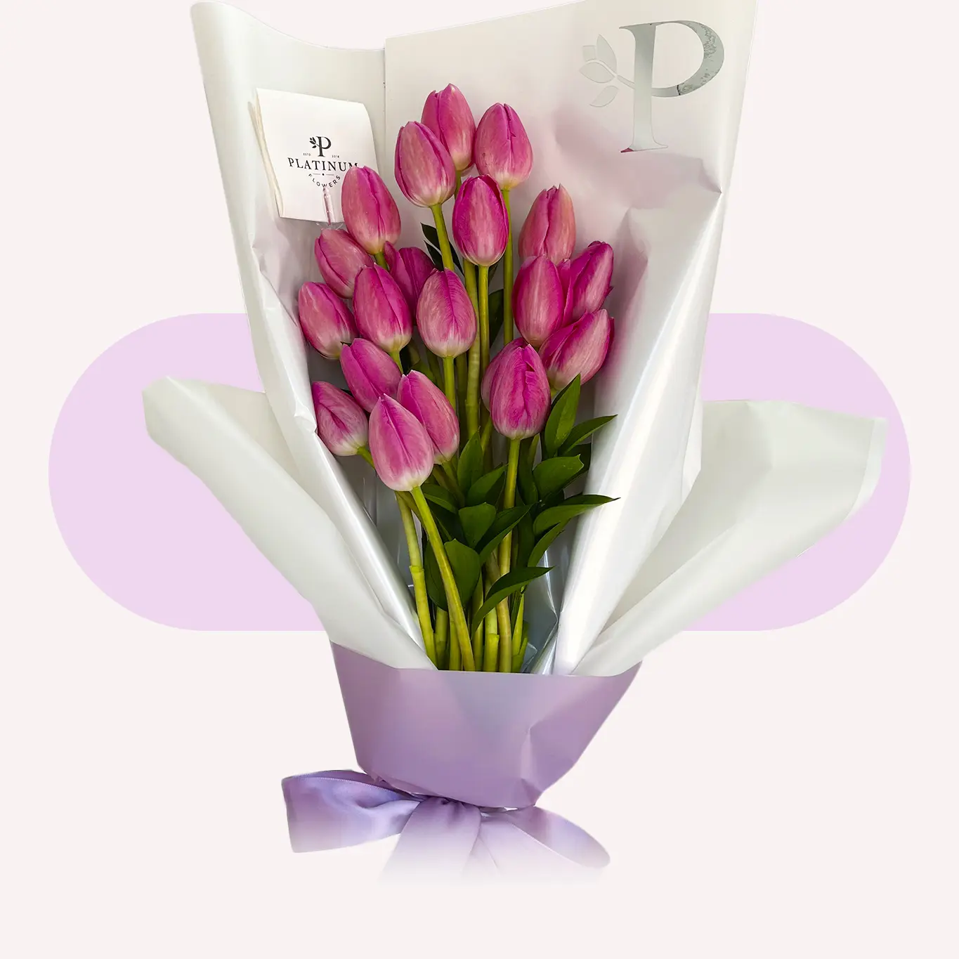 El bouquet 20 TULIPANES PLATINUM es un diseño elegante y de gran presencia, ideal para regalar un detalle premium con estilo y distinción.