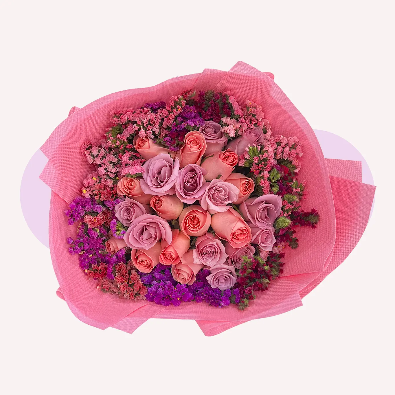 El bouquet 24 ROSAS DE COLORES PASTELES CON LETICIA es un detalle suave y armonioso, ideal para transmitir ternura y buen gusto.