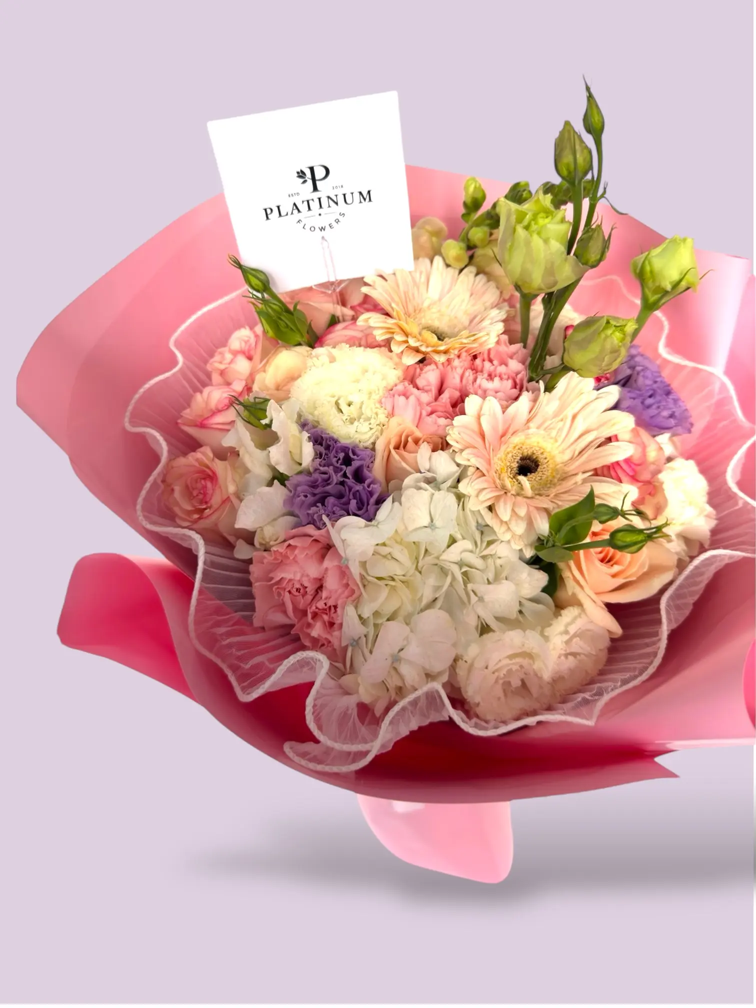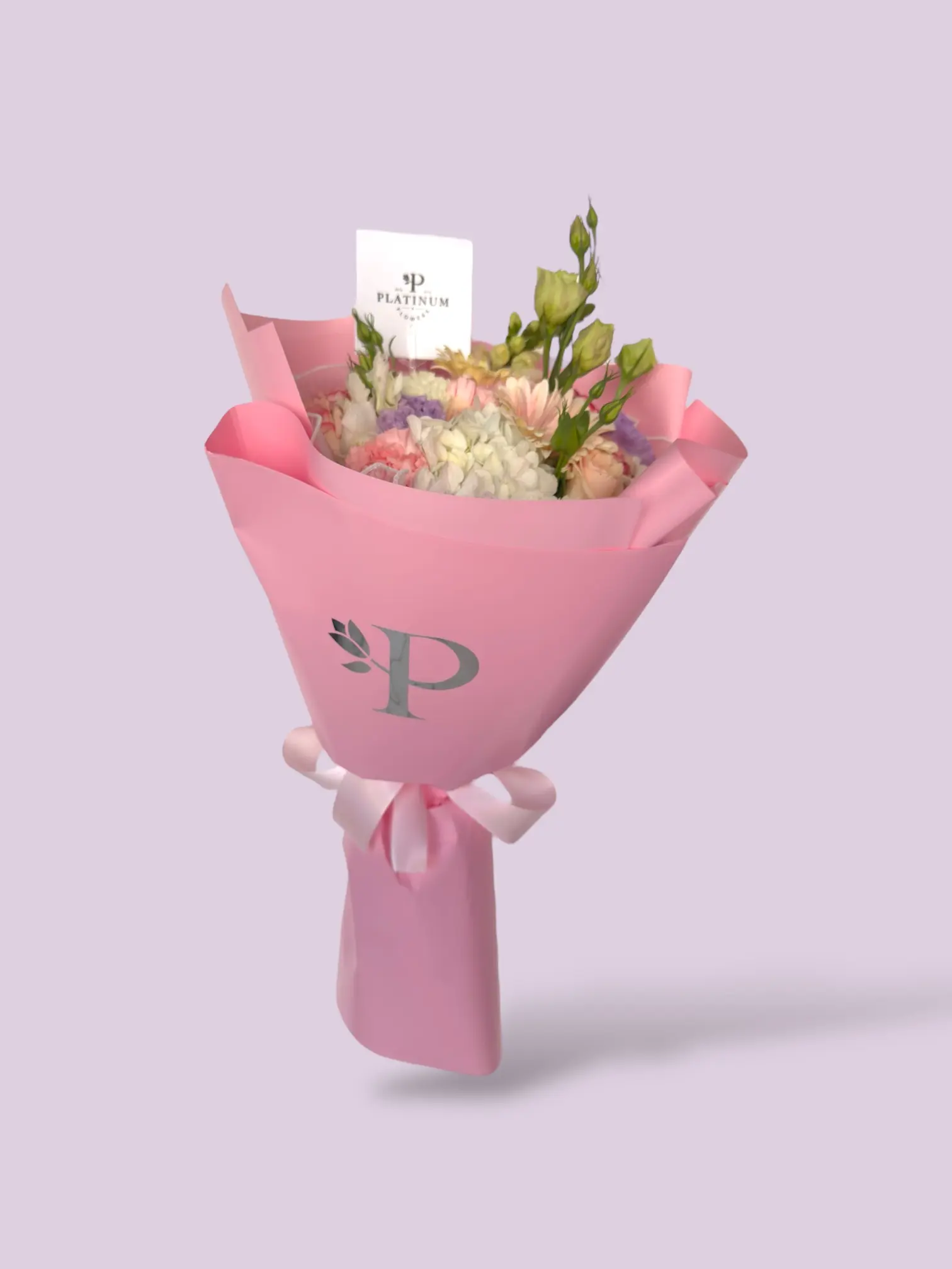 La mezcla de flores crea un bouquet equilibrado y lleno de vida, elaborado con el estilo característico de Platinum Flowers.