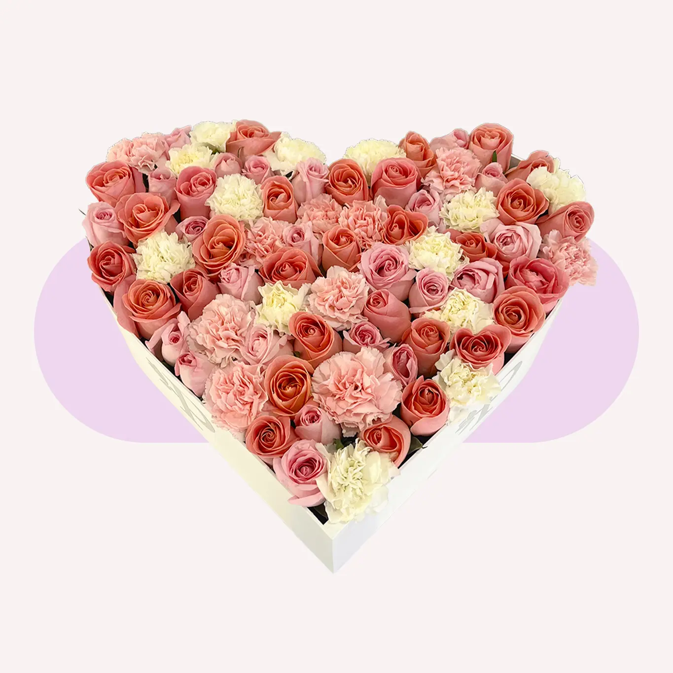 La caja CAJA CORAZÓN GRANDE DE 55 ROSAS Y 35 CLAVELES es un diseño impactante y romántico, ideal para sorprender con un detalle floral de gran volumen.